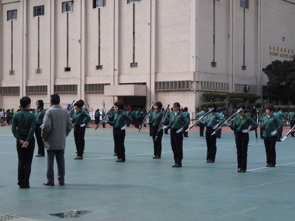 冬天尚未遠離,校園裡吹著冰涼的寒風。學期才剛開始,北一女的操場上,卻已經有了一群轉著木槍的綠衫同學們,在學姊監督指揮下,辛勤地練習著。